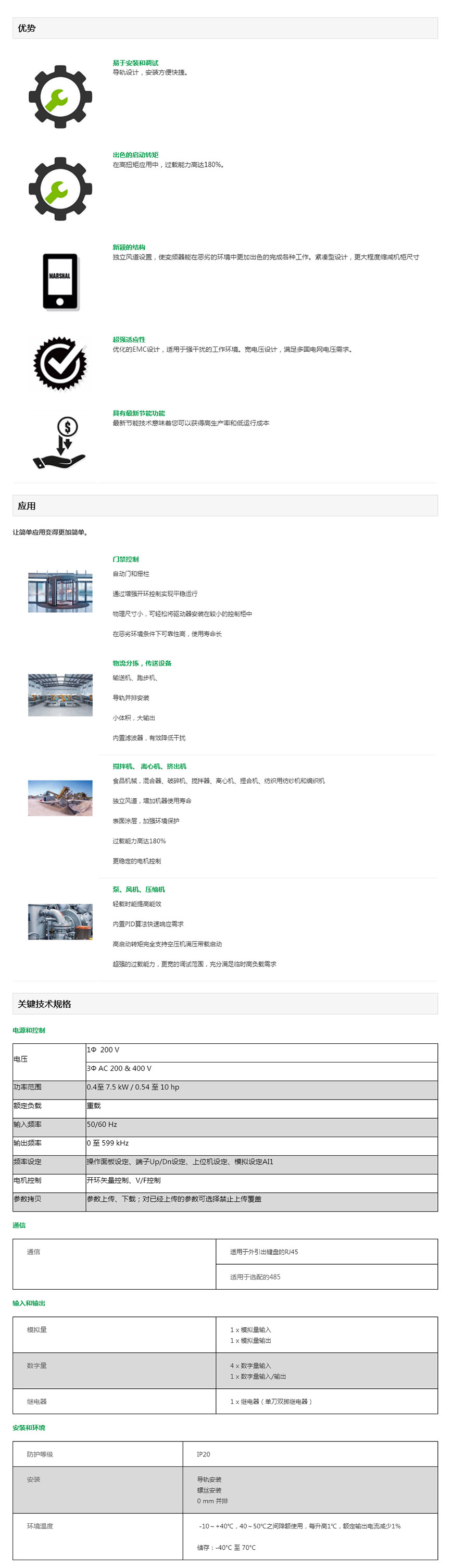 0.2 至 7.5 kW (0.27 至 10 hp)